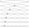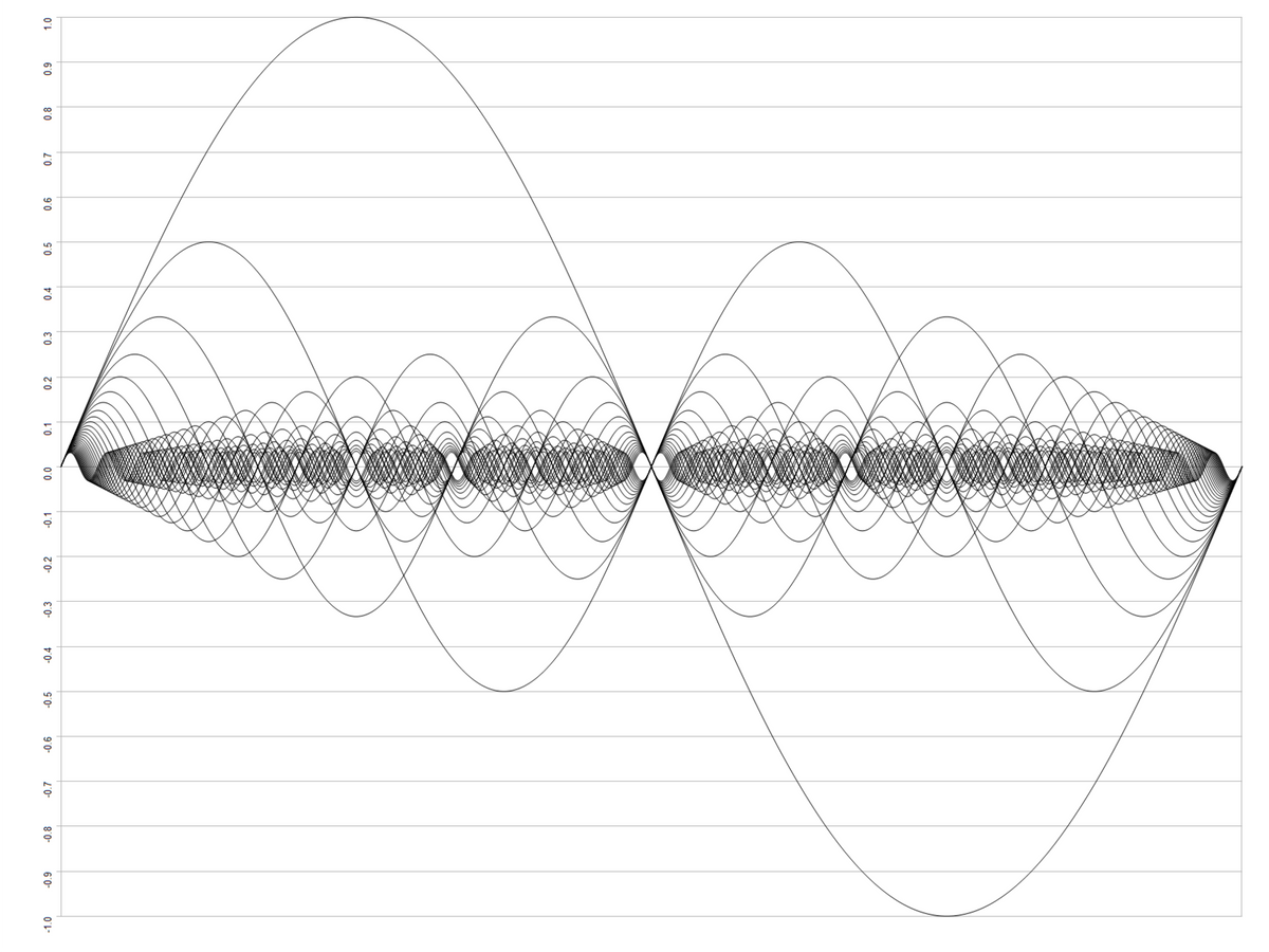 Like ripples in a pond, musical notes are complex. The properties of resonance produce many tones, like a stone dropped in water produces many ripples. A harmonic or overtone is a frequency that exists in mathematical relationship to its fundamental (the primary note we hear when a tone is played). For instance, A 440 Hz produces an overtone one octave higher at A 880 Hz. This 2:1 ratio was famously observed by Pythagoras, who is credited as having first noted that “a string exactly half the length of another will play a pitch that is exactly an octave higher when struck or plucked.” Pythagorean Tuning is based on perfect ratios, such as the octave (2:1) and the fifth (3:2). Many ancient instruments were constructed using these proportions. Singing in unison (1:1) is the most intuitive, followed by the octave when, for instance, a man with a low-pitched voice sings the same melody as a woman or child with a higher-pitched voice.